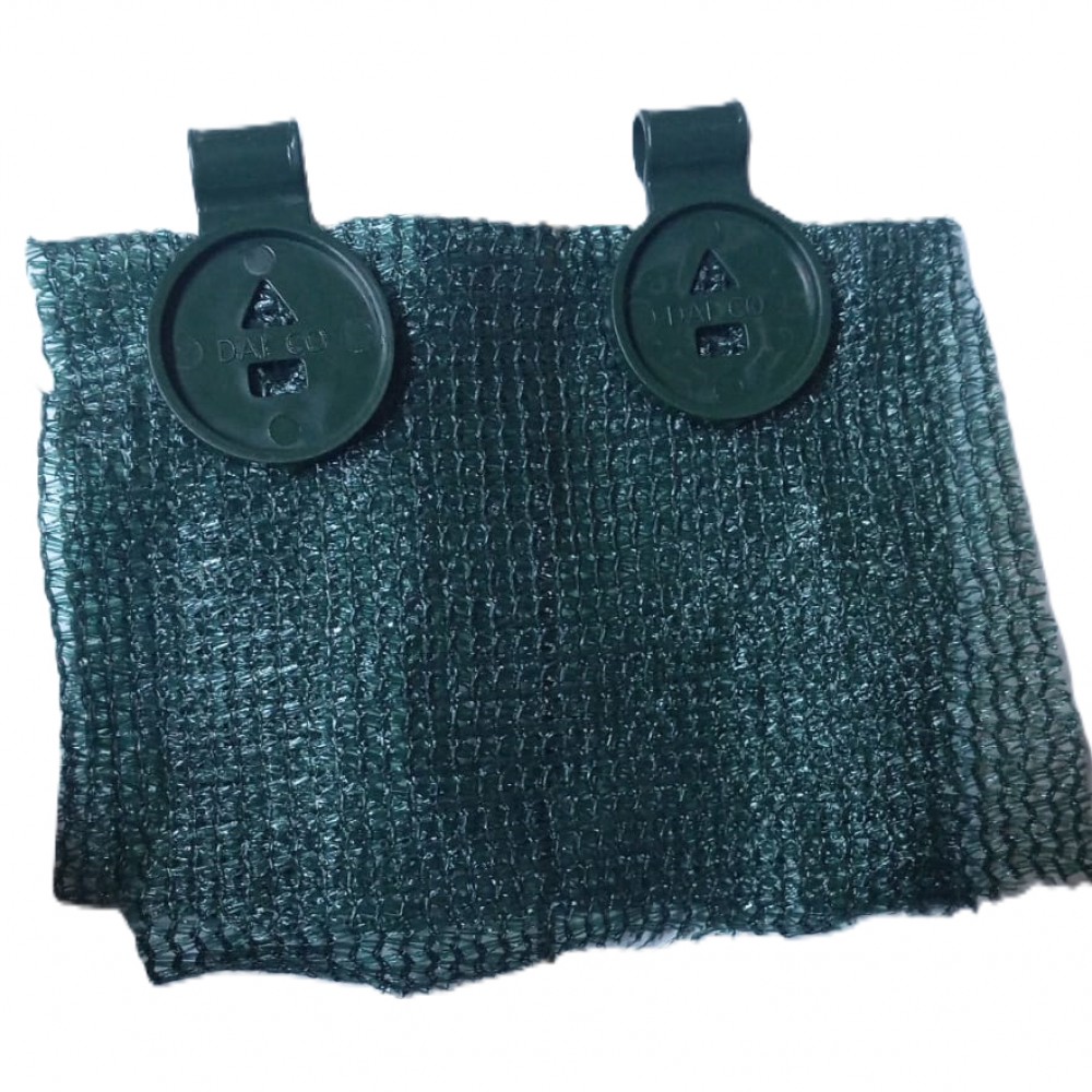 Koyu yeşil yuvarlak şekil gölgelik file klipsler 1200 adet gönderilir. Koyu yeşil şekilli klipslerin ortasında bir delik vardır, böylece çelik veya ahşap yapılara bağlanabilirler. Gölge ağını sıkmak için klipsin içinden bir ip geçirilebilir.